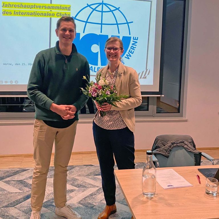 Der Internationale Club Werne hat im Rahmen seiner Mitgliederversammlung einen neuen Vorstand gewählt. Der bisherige Vorsitzende Benedict Dammermann trat nicht mehr zur Wahl an, da er sein Studium in Münster bald abschließen und sich anschließend geographisch neu orientieren wird. Zur neuen Vorsitzenden wählten die Mitglieder Dörte Hübchen-Oesterschulze, die bisher als 2. Vorsitzende aktiv war.